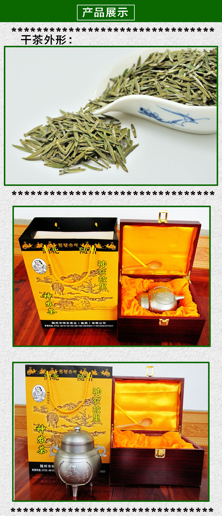 神農(nóng)有機(jī)茶:其特點(diǎn)是條索挺直,芽頭肥碩勻齊,銀綠隱翠,清香高鮮,滋味醇和,湯色嫩綠明亮,沖泡時(shí)茶芽立于杯底,形似銀劍豎立,亦像雨后春筍,蔚為壯觀。由于該茶產(chǎn)地位于產(chǎn)地湖北隨州位于中緯度季風(fēng)環(huán)流區(qū)域的中部,地處長江流域和淮河流域的交匯地帶,位于北緯31度19分至32度26分之單間,科學(xué)研究證明,北緯30度±2度,地帶氣溫適宜,該產(chǎn)地所產(chǎn)茶葉能兼顧外形和內(nèi)質(zhì),酚氨比在10左右,是優(yōu)質(zhì)綠茶的理想生長條件區(qū)域。